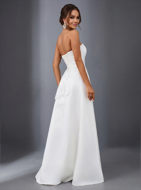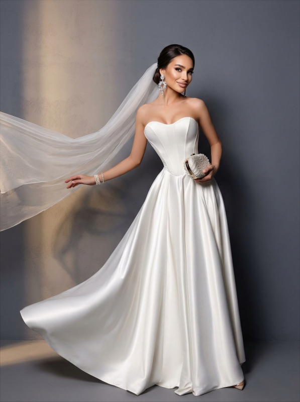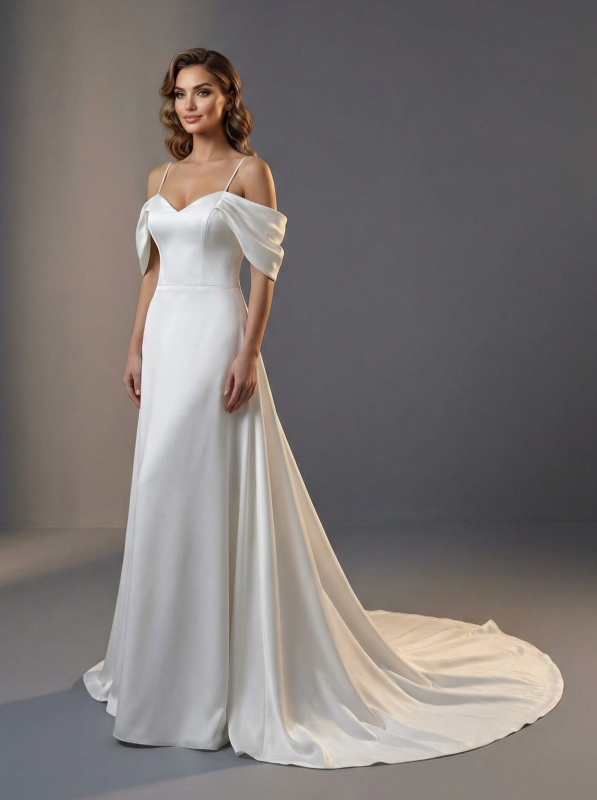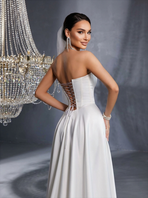 0 руб.Элегантное свадебное платье в стиле минимализм, выполненное из благородного матового атласа