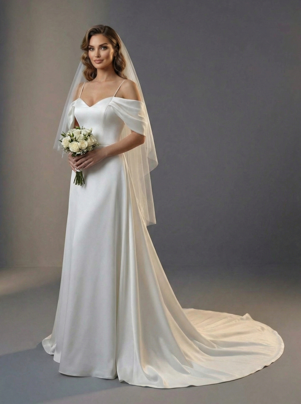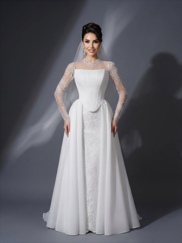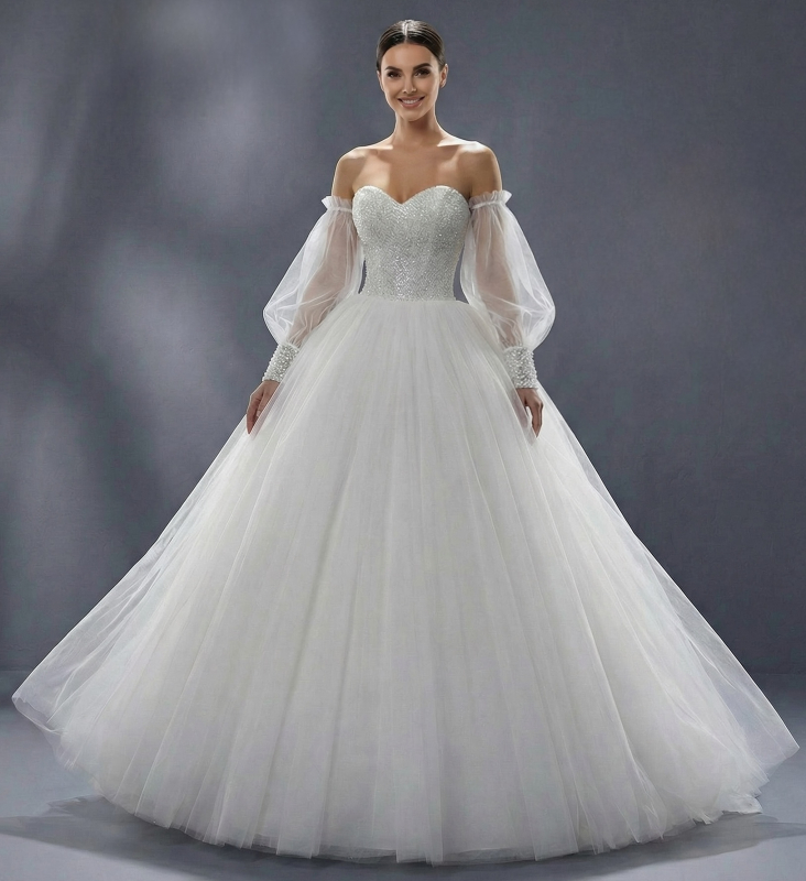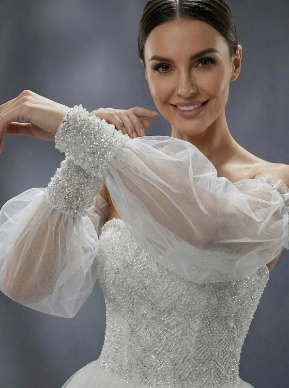 0 руб.Пышное свадебное платье А-силуэта со съемными спущенными рукавами
