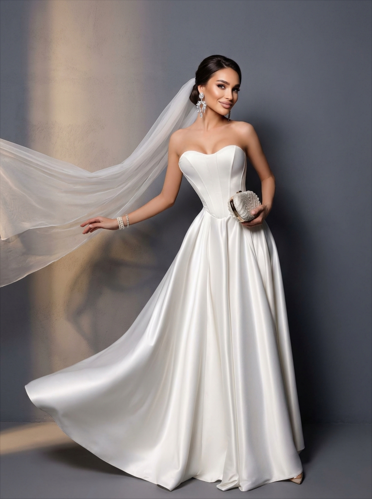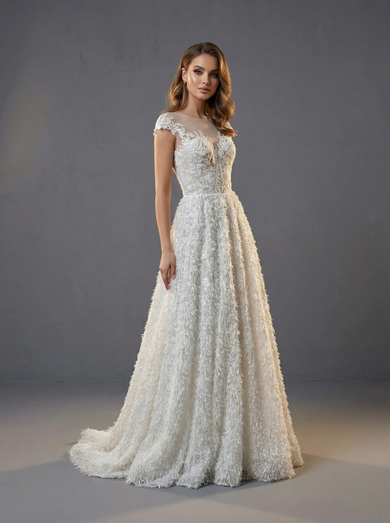 Оригинальное свадебное платье в А-силуэте с необычной юбкой