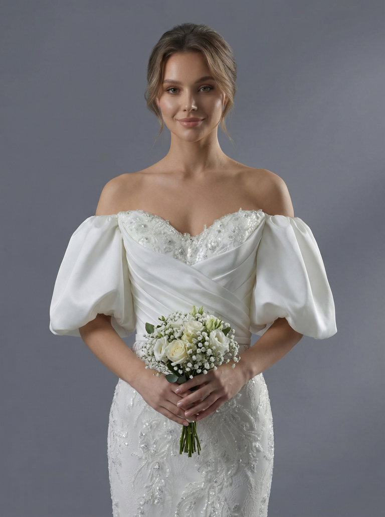Роскошное свадебное платье А-силуэта с пышными рукавами-фонариками
