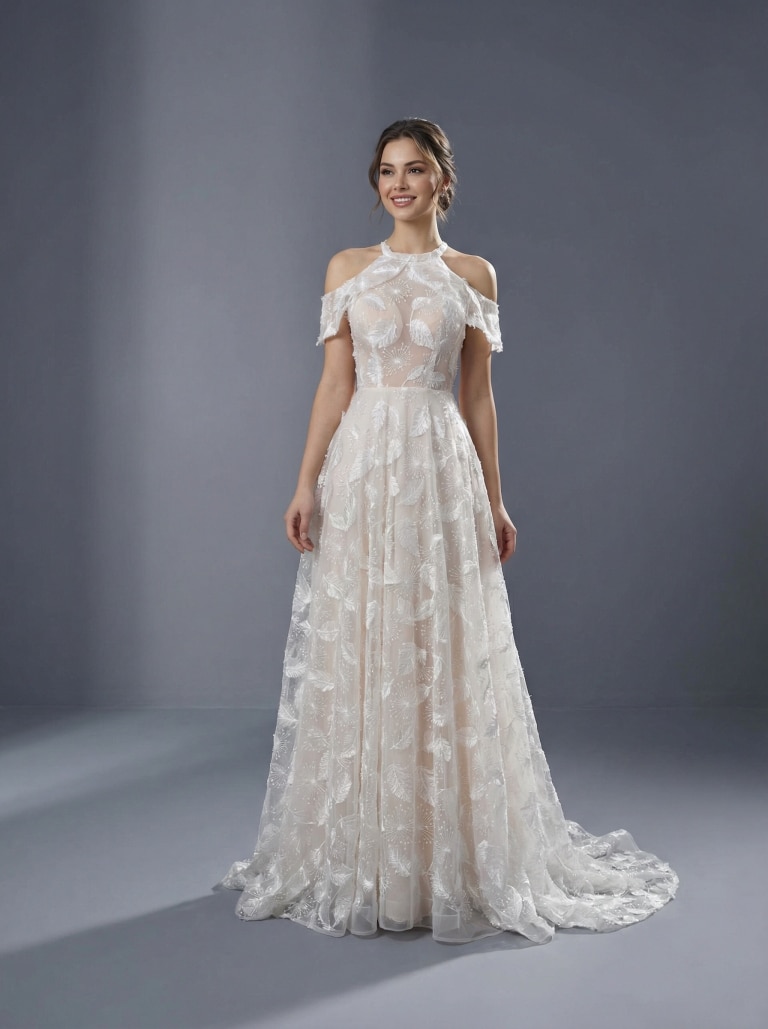 Эффектное свадебное платье А-силуэта в стиле современного романтизма с корсетным лифом и воздушной, многослойной юбки