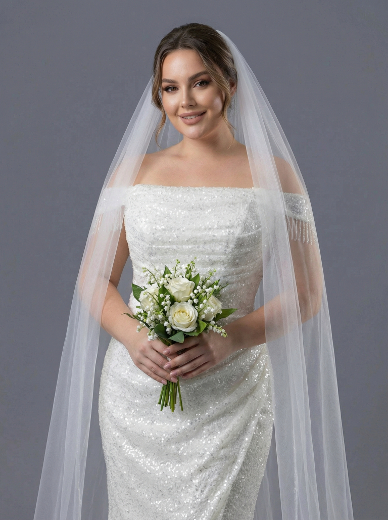 Свадебное платье выполнено в классическом стиле А-силуэта